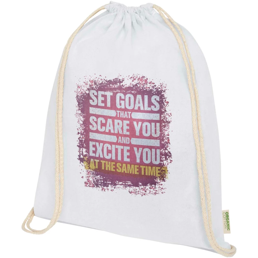 Torba ze sznurkiem wykonana w 100% z certyfikowanej przez OCS bawełny organicznej o gramaturze 140 g/m² pochodzącej z Indii. Torba posiada dużą komorę główną i bawełniane zamknięcie sznurkowe, które zapewnia bezpieczeństwo noszonych w niej rzeczy. Wytrzymałość do 5 kg. Pojemność: 5 litrów.