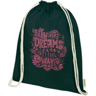 Torba ze sznurkiem wykonana w 100% z certyfikowanej przez OCS bawełny organicznej o gramaturze 140 g/m² pochodzącej z Indii. Torba posiada dużą komorę główną i bawełniane zamknięcie sznurkowe, które zapewnia bezpieczeństwo noszonych w niej rzeczy. Wytrzymałość do 5 kg. Pojemność: 5 litrów.