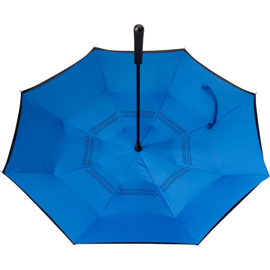 Odwracalny parasol manualny, 8 paneli, czarny trzon i rama z włókna szklanego, plastikowa rączka, zapięcie na rzep