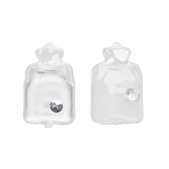 Ogrzewacz do rąk z dzianiny poliestrowej. Zawiera podkładkę termiczną z PVC aktywowaną przez naciśnięcie metalowej płytki wewnątrz. Wielokrotnego użytku poprzez umieszczenie podkładki w gorącej wodzie.