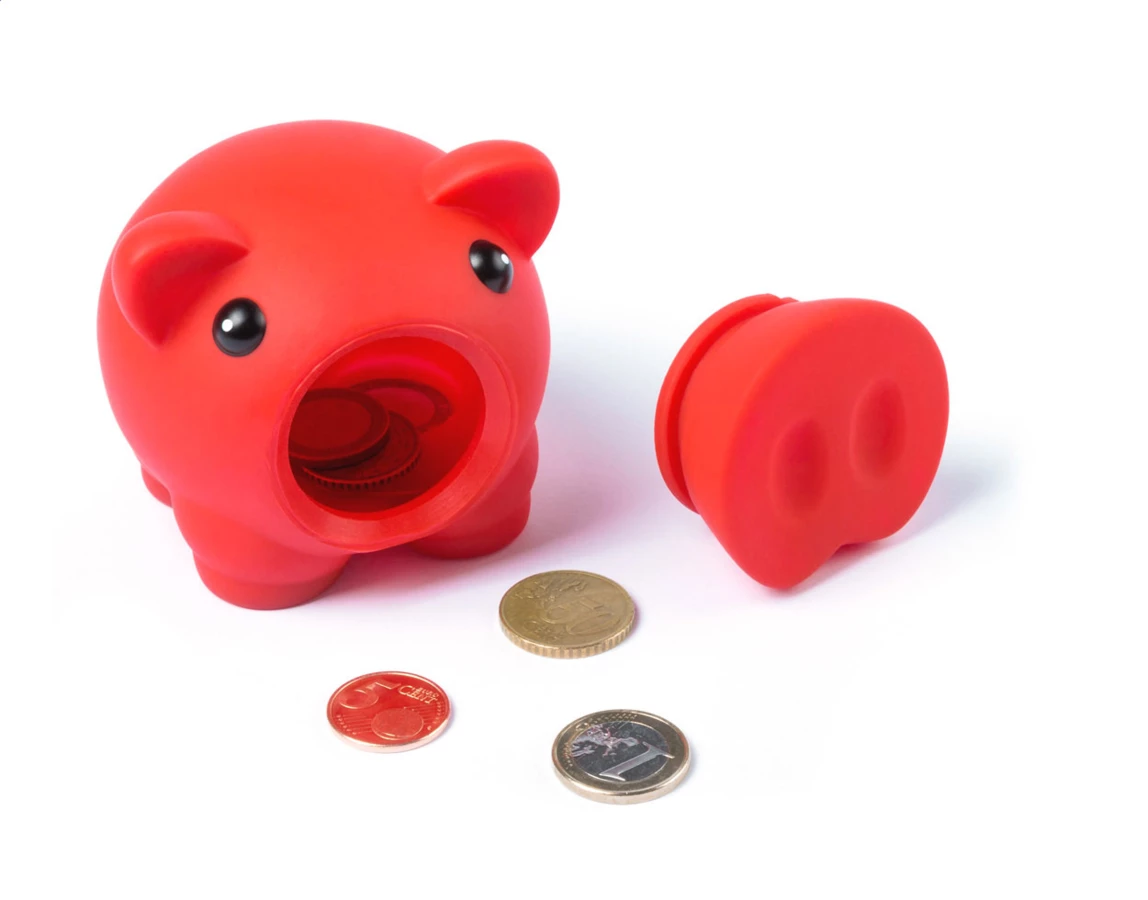 Plastikowa skarbonka z otwieranym nosem.