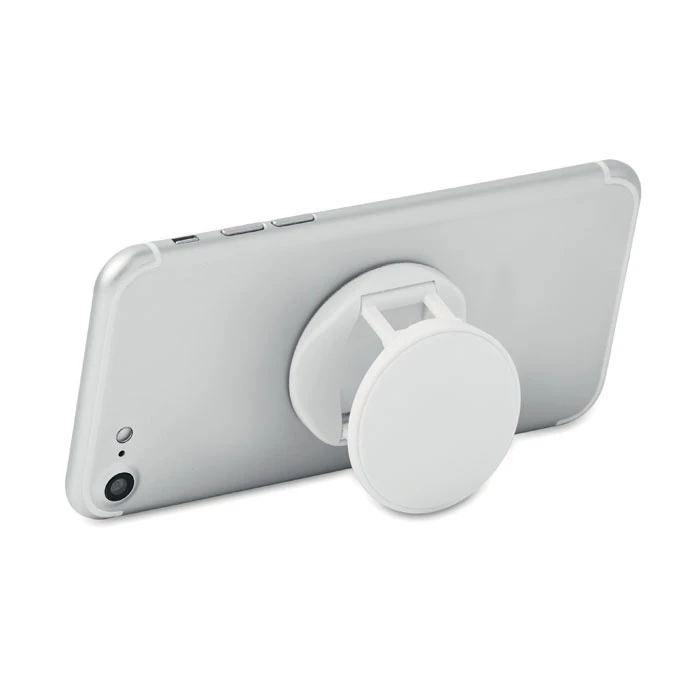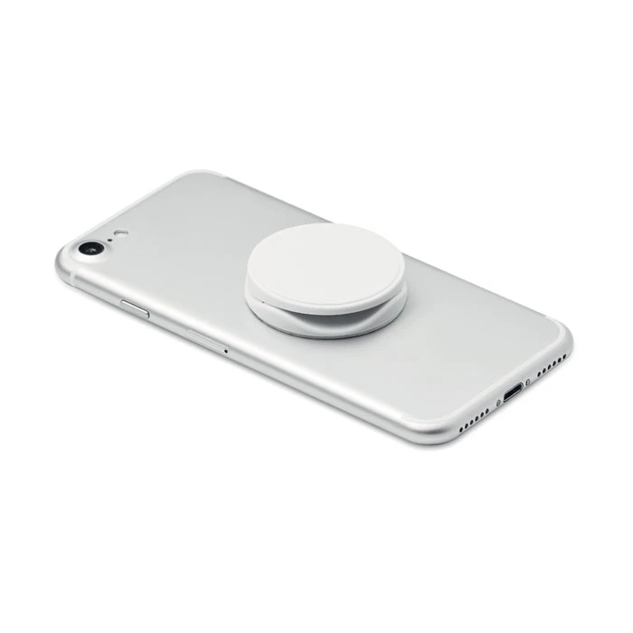 Składany okrągły uchwyt na telefon z ABS. Posiada 2 funkcje: stojak oraz uchwyt na telefon. Z tyłu ma naklejkę 3M.
