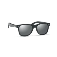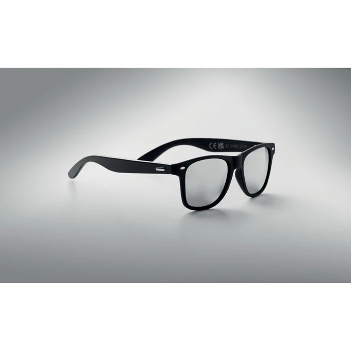 Okulary przeciwsłoneczne z czarnymi, zausznikami z bambusową powłoką i lustrzanymi soczewkami. Ochrona UV400. Bambus jest produktem naturalnym, dlatego mogą wystąpić nieznaczne różnice w kolorze, wzorze i rozmiarze.