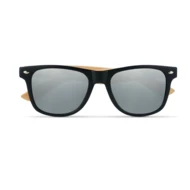 Okulary przeciwsłoneczne w stylu vintage z bambusowymi zausznikami i ramką PC. Kolorowe soczewki. Ochrona UV400. Bambus jest produktem naturalnym, dlatego mogą wystąpić nieznaczne różnice w kolorze, wzorze i rozmiarze.