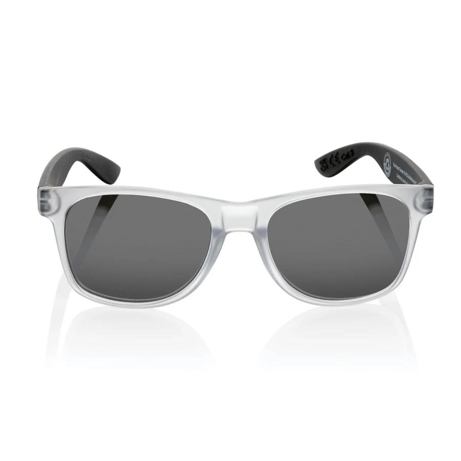 Okulary przeciwsłoneczne z filtrem UV400 i CAT 3, zgodne z normą EN ISO 12312-1, wykonane z PC z recyklingu z certyfikatem RCS, pudełko z kraftowego papieru w komplecie z certyfikatem FSC®, całkowita zawartość materiałów z recyklingu obliczona na podstawie wagi całkowitej produktu: 72%