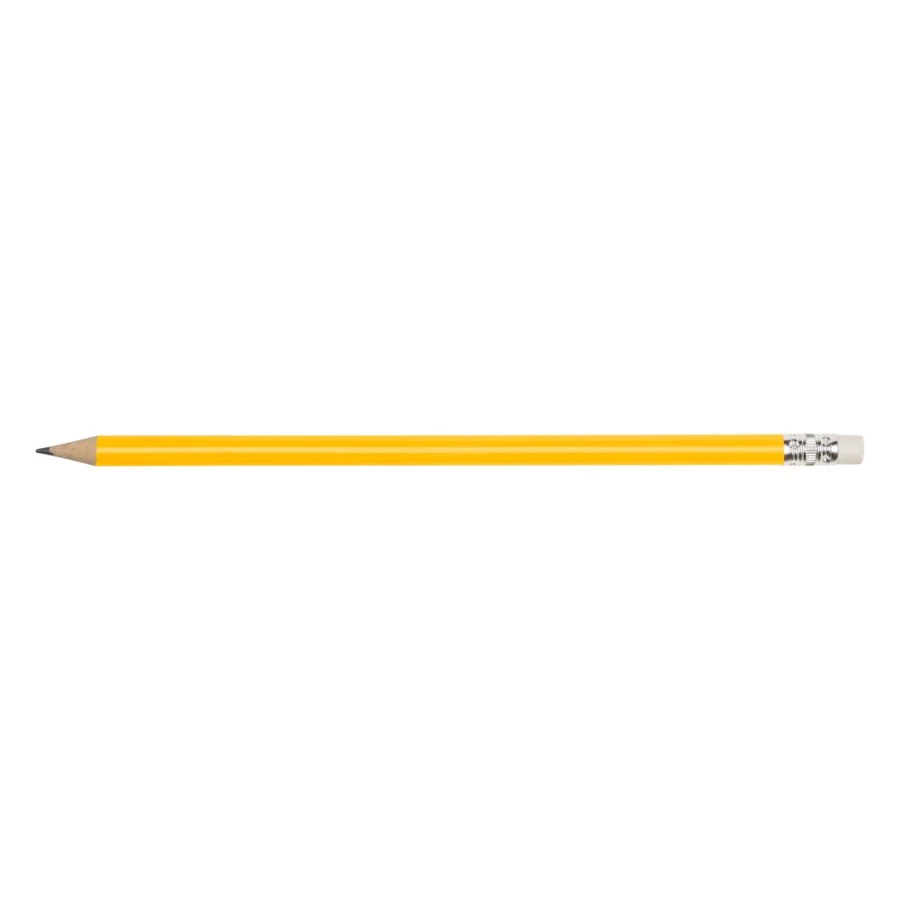 Ołówek z gumką i kolorowym trzonem, posiada naostrzoną końcówkę, produkt wykonany z drewna