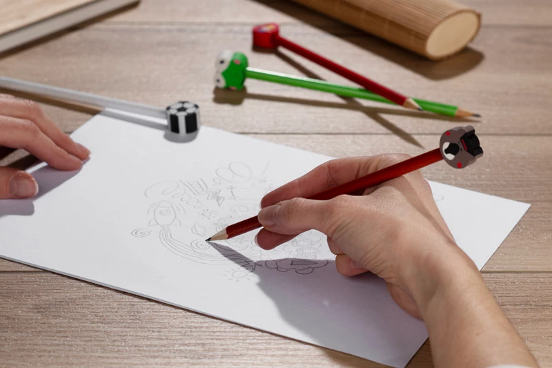 Drewniany ołówek z gumką o zabawnym kształcie to doskonały pomysł na upominek reklamowy.