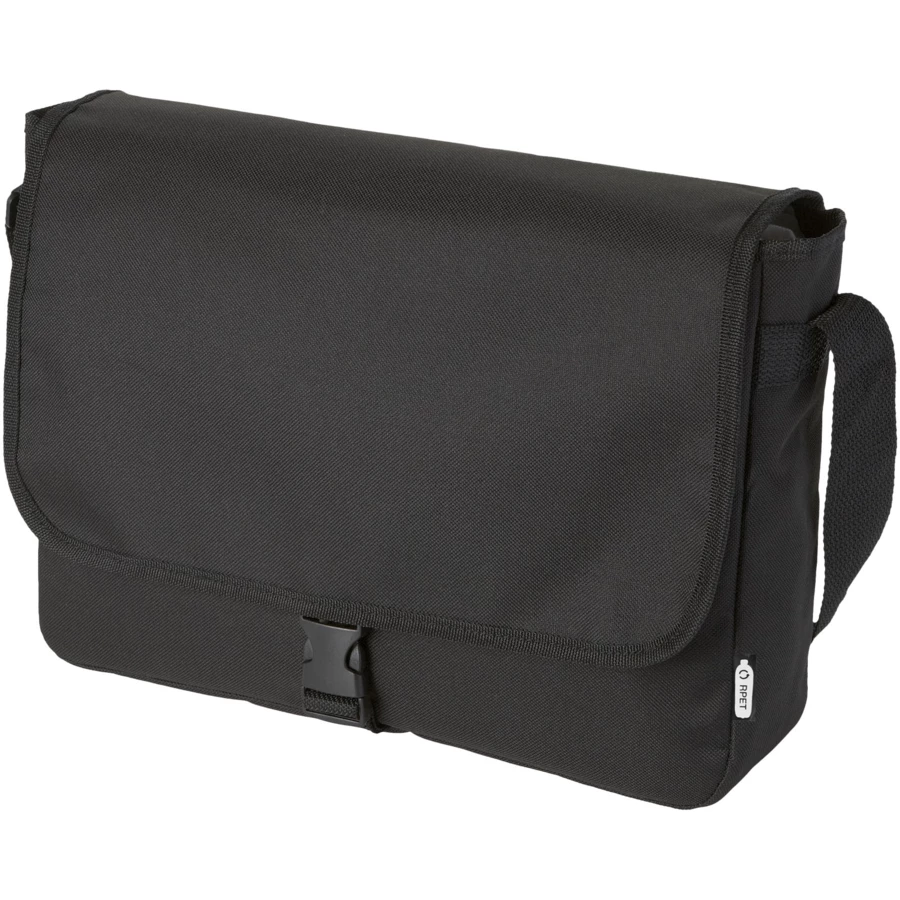 Torba na ramię wykonana z plastiku PET z recyklingu z regulowanym paskiem na ramię. Wyposażona w główną komorę zamykaną klapką i zapięciem na sprzączkę.