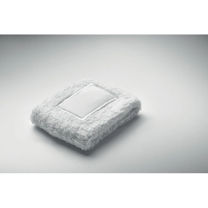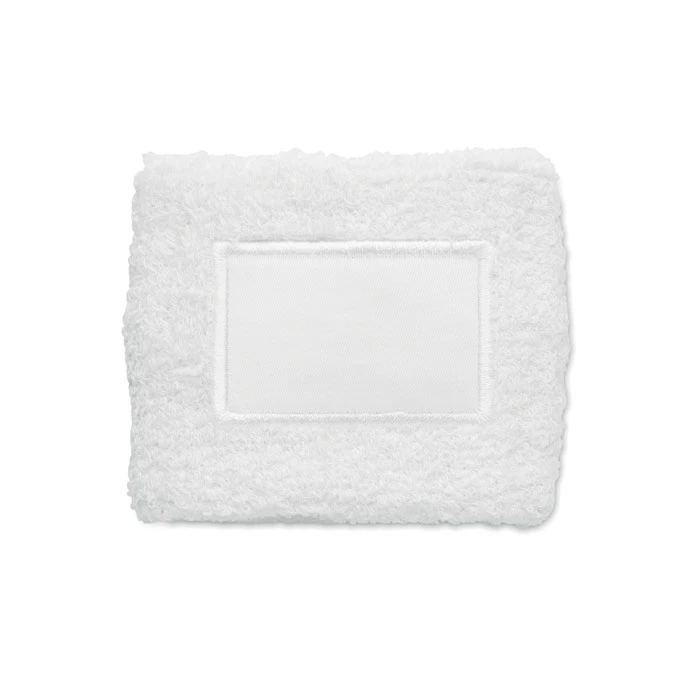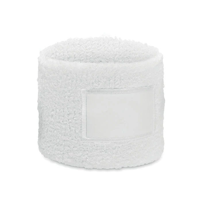 Opaska na nadgarstek z polibawełny (79%cotton/13%elastic/8% poliester) z bawełnianą naszywką w miejscu nadruku.