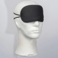 Opaska na oczy z wewnętrzną stroną wykonaną z przyjaznej dla skóry bawełny i zewnętrzną warstwą obszytą poliestrem z recyklingu. Opaska utrzymuje się na głowie dzięki elastycznej gumce do mocowania.