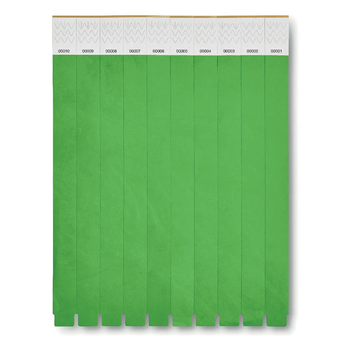 Zestaw 10 opasek festiwalowych na rękę DuPont ™ Tyvek®, szerokość 19mm. Każda posiada indywidualną numerację.