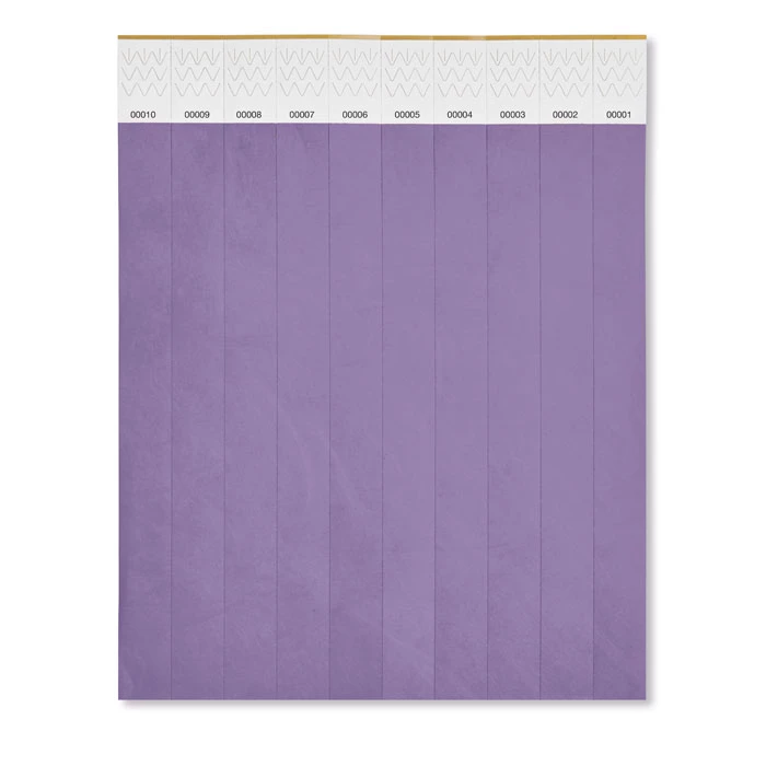 Zestaw 10 opasek festiwalowych na rękę DuPont ™ Tyvek®, szerokość 19mm. Każda posiada indywidualną numerację.
