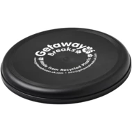 Frisbee wykonane w 100% z tworzyw sztucznych pochodzących z recyklingu, łączy zabawny pomysł promocyjny ze sprawdzonymi certyfikatami zrównoważonego rozwoju. Wykonane w Wielkiej Brytanii i zgodne ze standardem EN72. Ze względu na charakter materiału pochodzącego z recyklingu frisbee może mieć plamki. Nieodpowiednie dla dzieci poniżej trzeciego roku życia. Średnica: 23 cm.