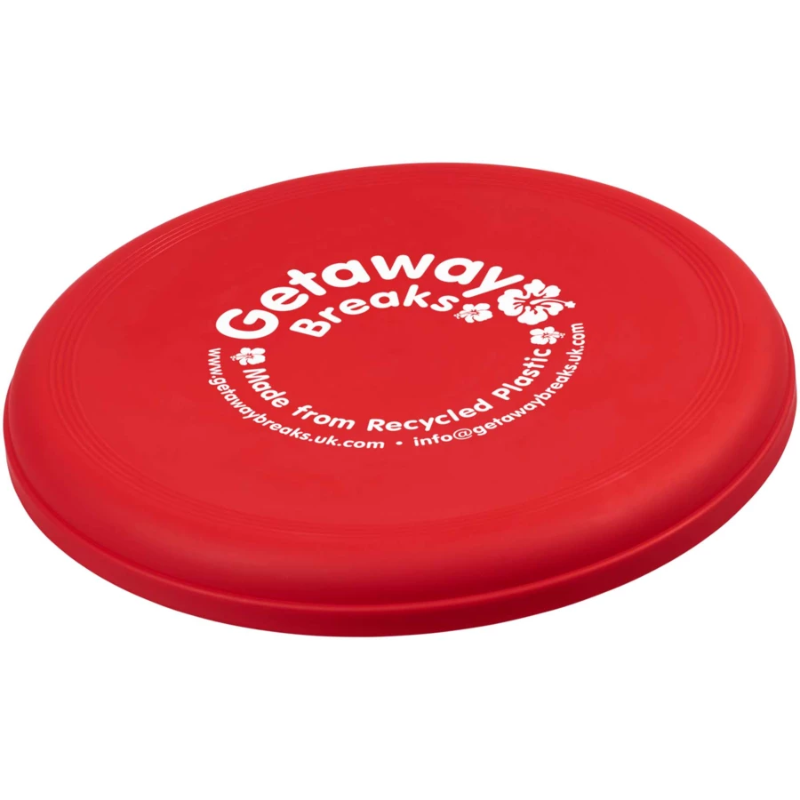 Frisbee made from 100% recycled plastic, combining a fun promotional idea with strong sustainable credentials. Made in the UK and compliant with EN72. The frisbee may have a speckled finish due to the nature of the recycled material. Diameter: 23 cm.