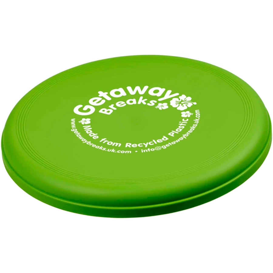 Frisbee made from 100% recycled plastic, combining a fun promotional idea with strong sustainable credentials. Made in the UK and compliant with EN72. The frisbee may have a speckled finish due to the nature of the recycled material. Diameter: 23 cm.