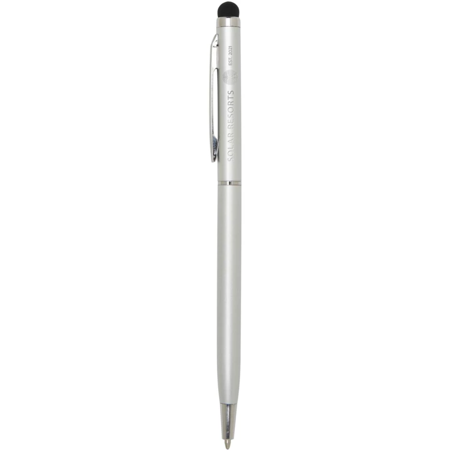 Ten wszechstronny zestaw składający się z długopisu i rysika został wykonany z wytrzymałego aluminium. Długopis umożliwia płynne pisanie, a wbudowany rysik doskonale nadaje się do precyzyjnej nawigacji na ekranach dotykowych. Kolor tuszu: Niebieski. Żywotność: 1000 metrów. Rozmiar stalówki: 1,0 mm.