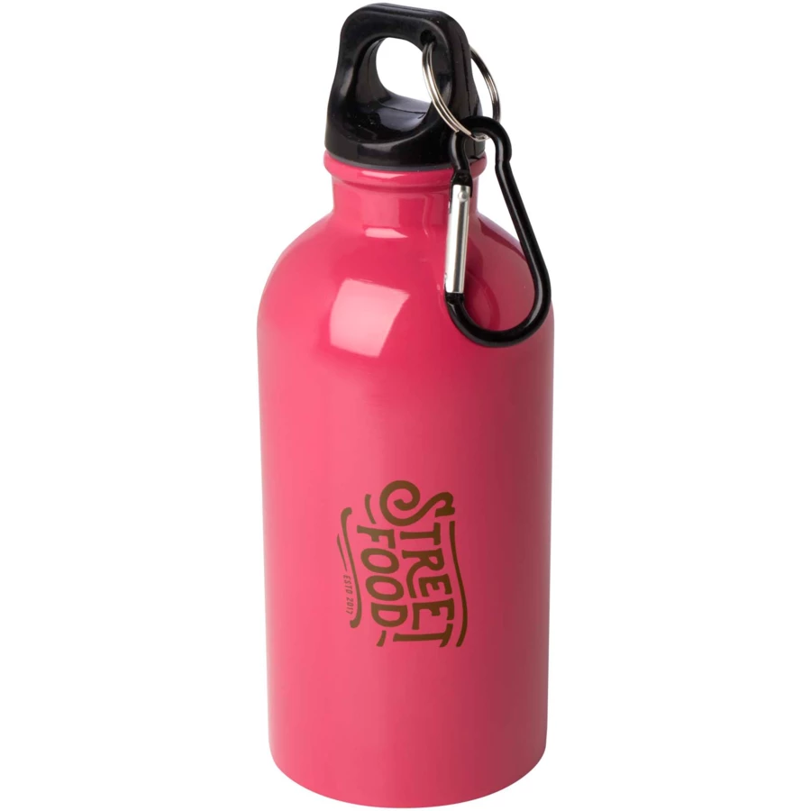 Dzięki tej wytrzymałej, a jednocześnie lekkiej butelce o pojemności 400 ml wykonanej ze stali nierdzewnej z certyfikatem RCS możesz przez cały czas dbać o odpowiednie nawodnienie organizmu. Jest idealnym towarzyszem podczas uprawiania sportu, jednodniowych wycieczek oraz w biurze. Jednościenna butelka Oregon ma zakręcaną pokrywkę i zapewnia dużo miejsca na umieszczenie dowolnego logo. Butelkę można przypiąć do torby za pomocą przymocowanego karabińczyka (nie nadaje się do wspinaczki), aby jej nie zgubić.