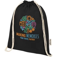 Oregon ściągana sznurkiem torba na zakupy z bawełny z recyklingu z certyfikatem GRS 140 g/m² (NPC-12073590)