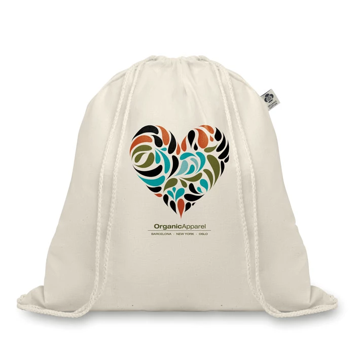 Organiczny worek ze sznurkiem, wykonany w 100% z bawełny. 105 gr/m².