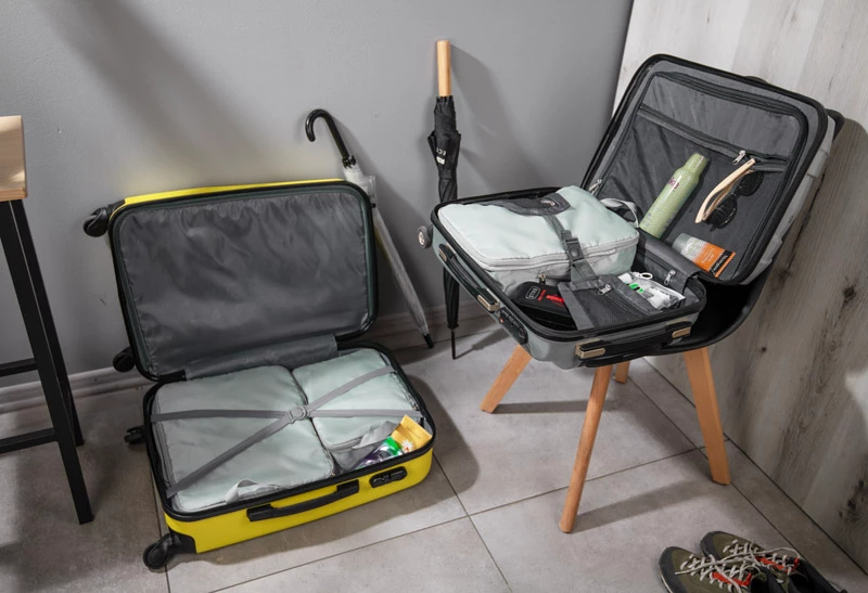 Organizer do walizki KOMPRESI to zestaw trzech kompresyjnych pokrowców podróżnych, które ułatwiają segregację ubrań i akcesoriów w walizce lub torbie. Dzięki dodatkowym suwakom umożliwiają zmniejszenie objętości zapakowanej odzieży, co pozwala lepiej wykorzystać przestrzeń bagażu. Każdy pokrowiec jest zamykany na suwak i wyposażony w uchwyt ułatwiający przenoszenie.