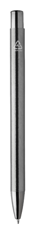 Długopis z recyklingowanego aluminium z błyszczącym metalicznym wykończeniem. Z niebieskim wkładem.
