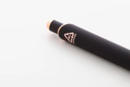 Długopis wykonany z aluminium pochodzącego z recyklingu, z gumowanym wykończeniem i detalami w kolorze różowego złota. Ze specjalną powłoką pod grawer lustrzany w kolorze różowego złota. Z niebieskim wkładem.