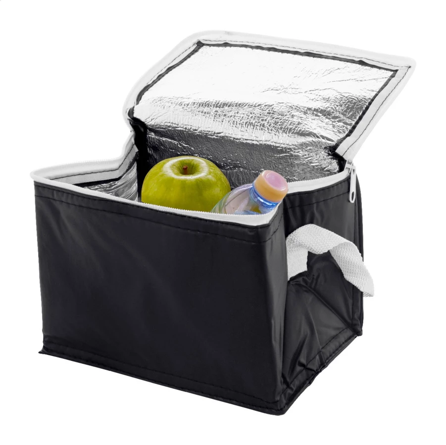 Zapinana torba termiczna z PVC, wyściełana aluminium. Na 6szt puszek 0,33L.