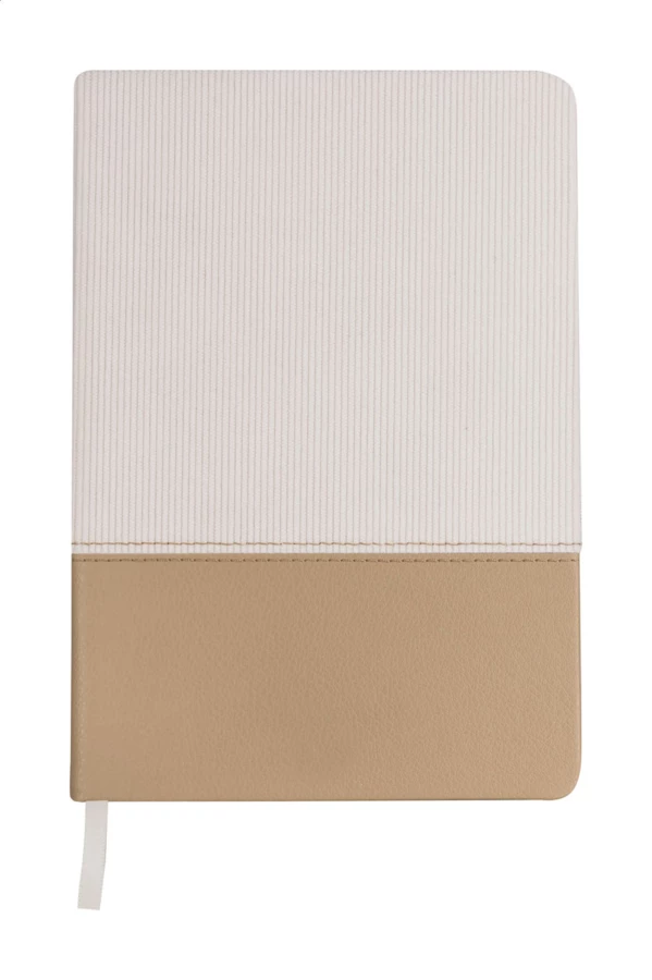Notes w oprawie z teksturowanego poliestru i skóry PU pochodzącej z recyklingu, z zakładką i 80 kartkami w linie. Rozmiar A5.