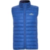 Gilet vest with feather touch filling. Inverted zips with matching chin protector and puller. Two side pockets with zip. Elastic trim in hem and armholes. Contrasting inner lining. Light and foldable garment. Water resistant. Wind-proof model.
