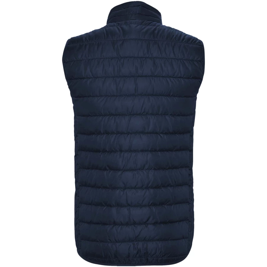 Gilet vest with feather touch filling. Inverted zips with matching chin protector and puller. Two side pockets with zip. Elastic trim in hem and armholes. Contrasting inner lining. Light and foldable garment. Water resistant. Wind-proof model.