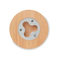 Bambusowy otwieracz do butelek z funkcją podstawki. Bambus jest produktem naturalnym, mogą występować niewielkie różnice w kolorze i rozmiarze.