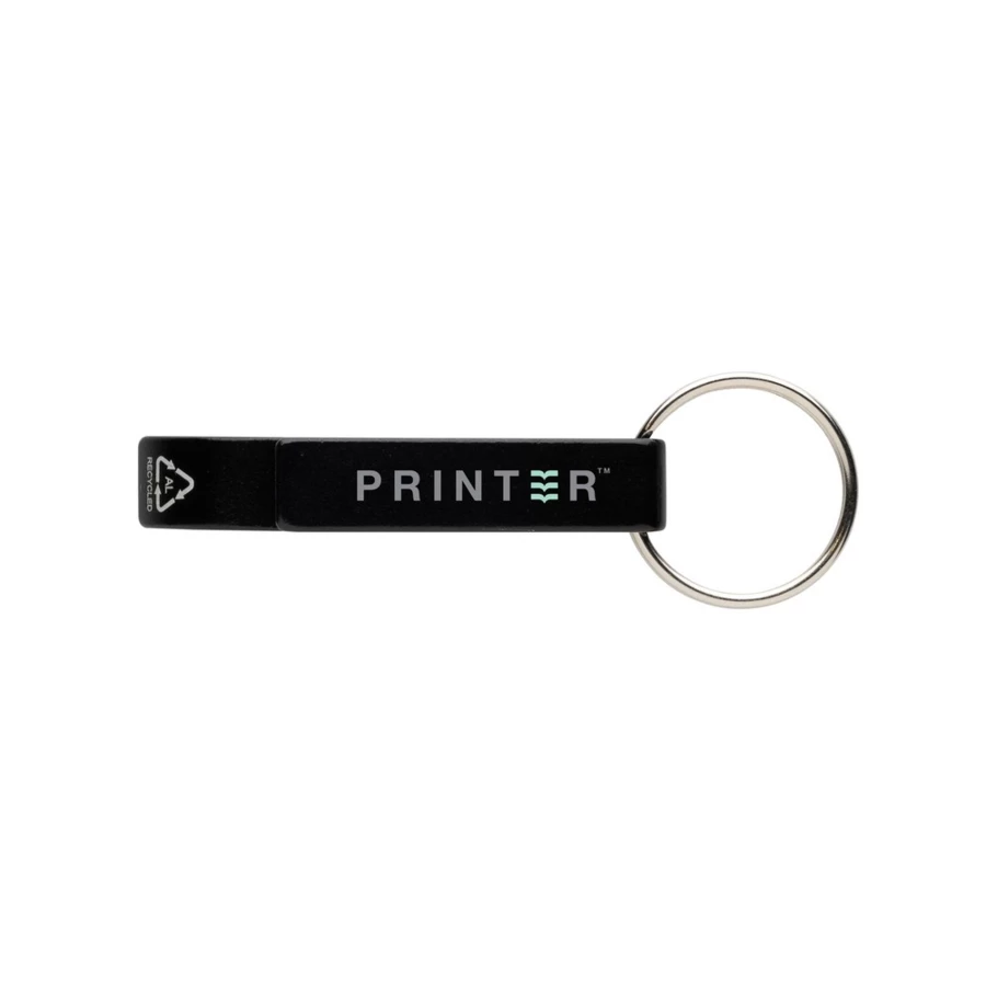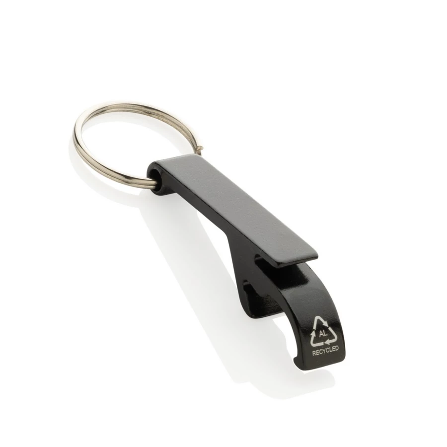 Otwieracz do butelek i puszek, wykonany z aluminium z recyklingu, całkowita zawartość materiałów z recyklingu obliczona w oparciu o wagę całkowitą przedmiotu: 79%