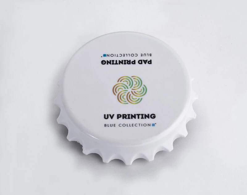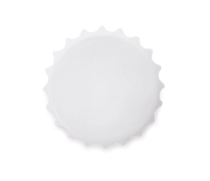 Otwieracz do butelek w kształcie kapsla. Posiada wbudowany magnes, za pomocą którego otwieracz można przymocować do lodówki. Znakowanie logo wykonujemy metodą nadruku.