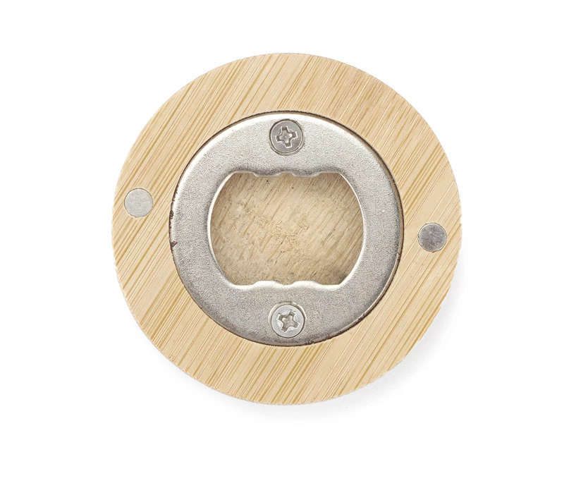 Praktyczny otwieracz do kapsli wykonany z ekologicznego materiału – bambusa. Umieszczone na spodzie magnesy umożliwiają przymocowanie go do metalowych części, np. drzwi lodówki, dzięki czemu otwieracz jest łatwo dostępny zawsze, kiedy go potrzebujemy. Cześć służąca do otwierania butelek wykonana z wytrzymałej stali nierdzewnej.