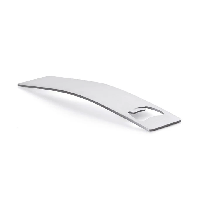 Elegancki wygięty otwieracz do butelek. Mocna stal nierdzewna.