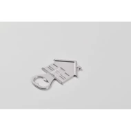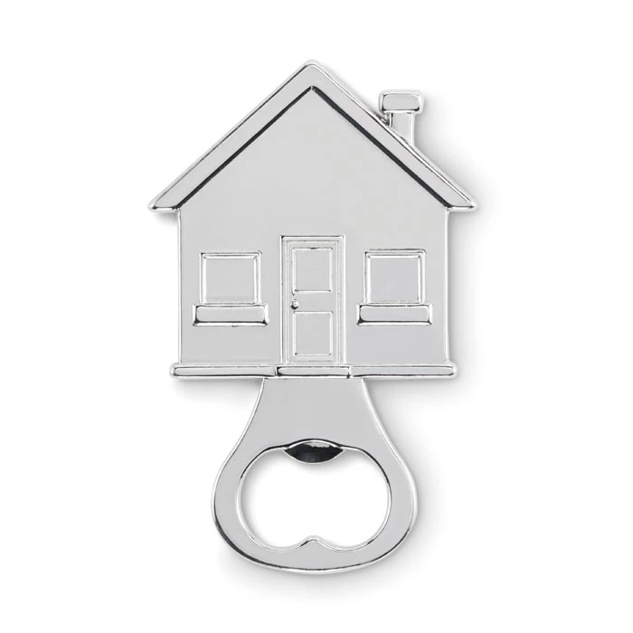 Otwieracz do butelek ze stopu cynku w kształcie domku.