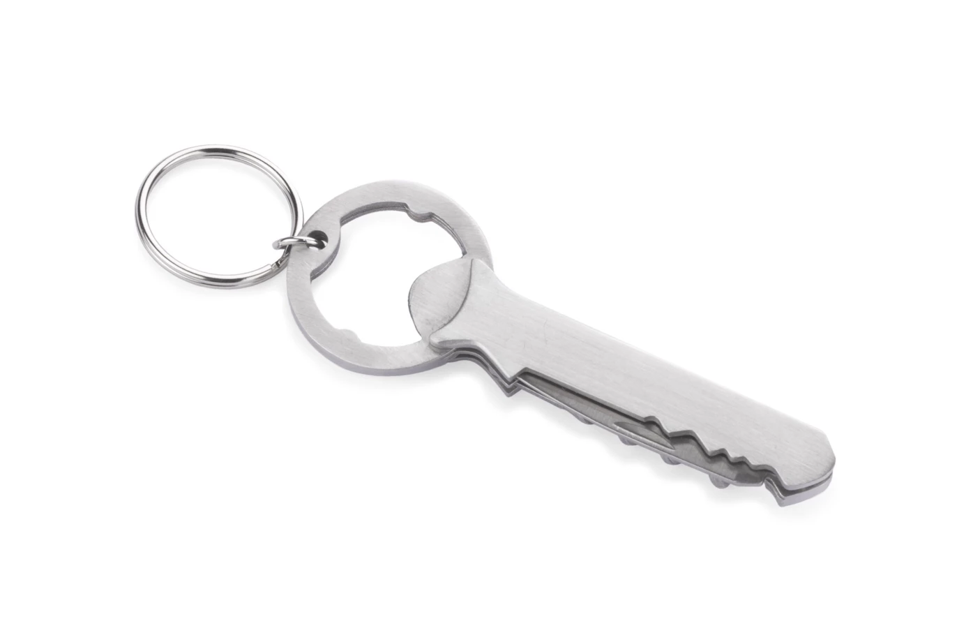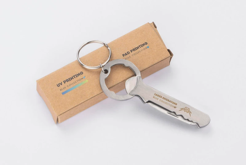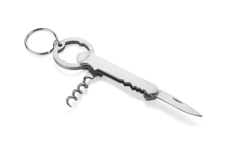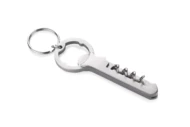 Alco posiada 3 funkcje: brelok, otwieracz do kapsli oraz korkociąg do wina. Wykonany ze stali nierdzewnej. Zapakowany w brązowy kartonik.