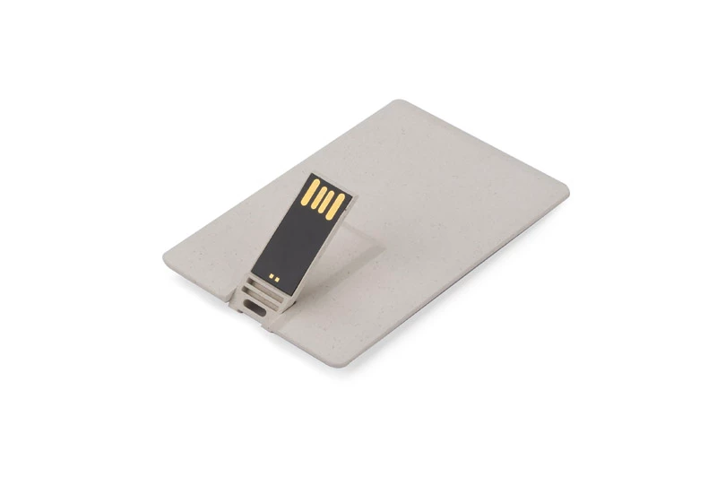 KARTA ECO to przenośna pamięć USB o pojemności 64 GB wykonana z tworzywa ze słomy pszennej. Kształt karty kredytowej daje dużą powierzchnię nadruku oraz zapewnia łatwe przechowywanie, także w portfelu. Standard usb: 2,0, szybkość zapisu 6 MB/s; szybkość odczytu 16 MB/s.