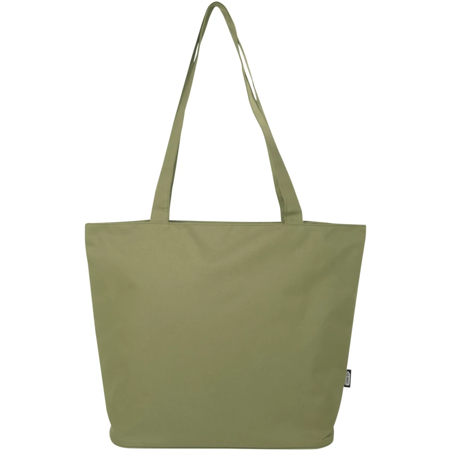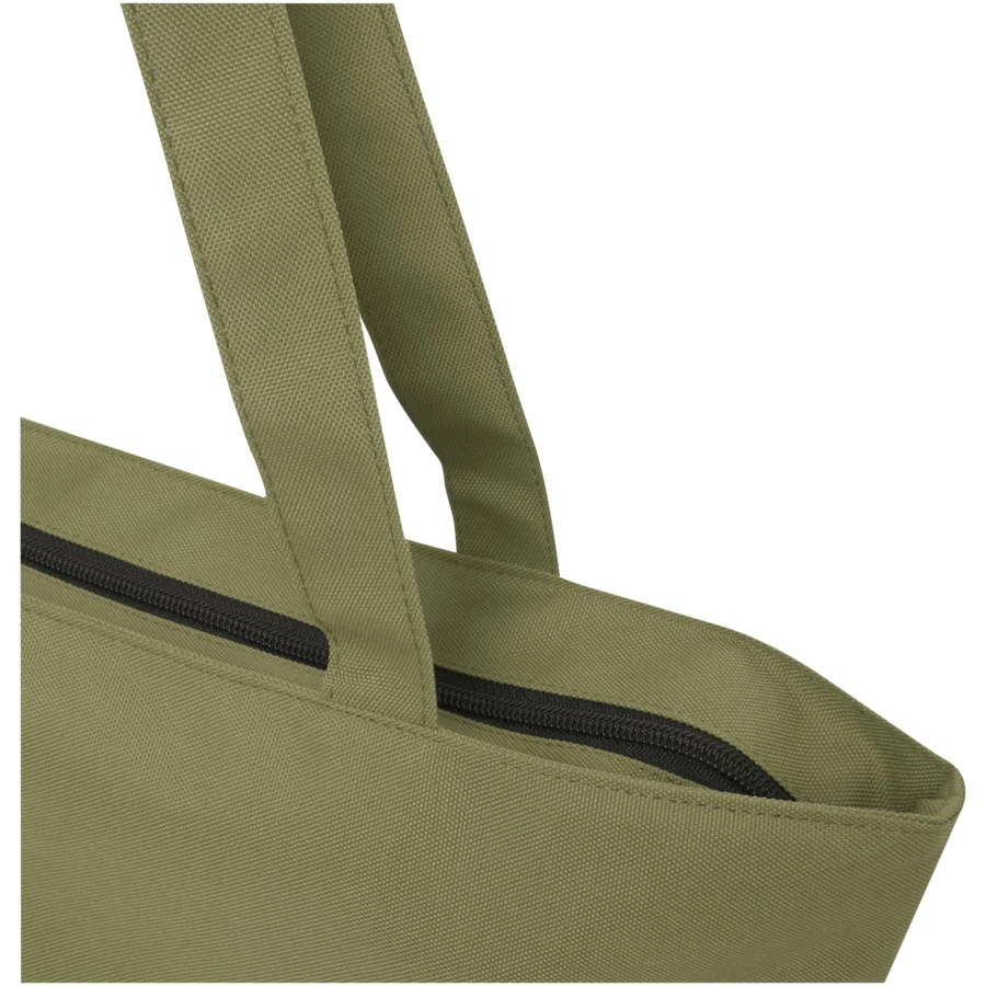 Panama zapinana na zamek błyskawiczny torba z wodoodpornego materiału RPET 600D z recyklingu z certyfikatem GRS to trwała, wielofunkcyjna torba na zakupy, która idealnie nadaje się na imprezę, plażę lub zakupy spożywcze. Posiada główną komorę zapinaną na zamek błyskawiczny oraz wewnętrzną kieszeń zapinaną na zamek błyskawiczny, która jest wystarczająco duża, aby pomieścić telefon i inne cenne rzeczy. Uchwyty mają długość 34 cm, dzięki czemu torbę można łatwo nosić na ramieniu. Wytrzymałość do 10 kg. Wolne od PVC.