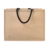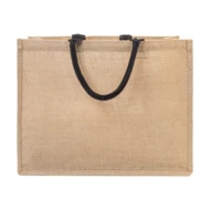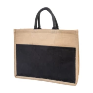 Laminowana torba plażowa z juty z bawełnianymi uchwytami i przednią kieszenią.