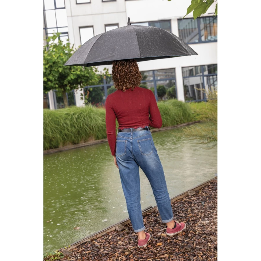 Parasol 27", automatyczne otwieranie, uchwyt z PP, metalowa rama, żebrowanie z włókna szklanego, panele wykonane z 10,7 poddanych recyklingowi butelek PET (500 ml), dzięki zastosowaniu technologii AWARE™ wykorzystane materiały są identyfikowalne z pochodzenia, 2% wpływów z każdego sprzedanego produktu z kolekcji Impact jest przekazywane na rzecz Water.org