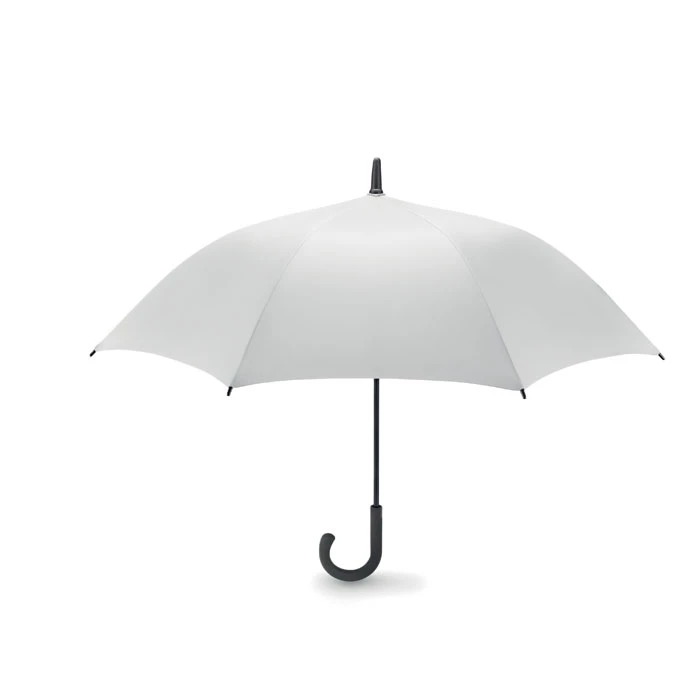 Elegancki 23 calowy parasol automatyczny odporny na działanie silnego wiatru wykonany z tkaniny 190T. Trzon czerniony, żebra wykonane z włókna szklanego, zakończenia plastikowe. Zakrzywiona rączka z gumowanego plastiku. Zapięcie manualne.