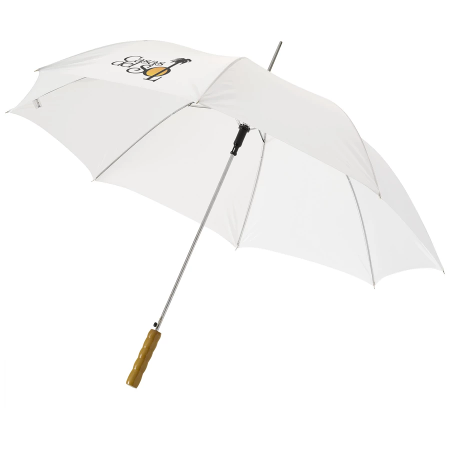 Parasol Lisa 23" to prawdziwy bestseller. Dzięki automatycznemu systemowi, parasol można szybko otworzyć. Posiada metalowy trzon i żebra oraz drewnianą rączkę, która nadaje parasolowi klasyczny wygląd. Parasol oferuje wiele możliwości dodania informacji reklamowej lub logo. Poza tym, parasol Lisa jest dostępny w różnych kolorach lub schematach kolorystycznych.