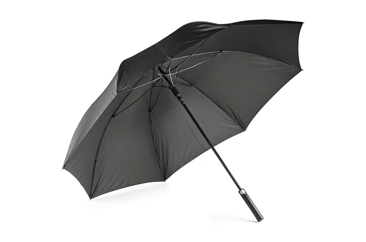 Elegancki, duży parasol (średnica po rozłożeniu 122cm) z drewnianą rączką. Wykonany z włókna szklanego i materiału typu pongee 190 T. Otwierany automatycznie. Logo naniesiemy techniką sitodruku.