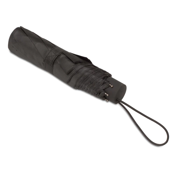 Składany wiatroodporny parasol ręcznie otwierany i zamykany. Rama i żebra wykonane z włókna szklanego i aluminium, pałąk z metalu. Plastikowa, gumowana rączka typu soft grip wyposażona w opaskę z taśmy elastycznej. Pakowany w wodoodporne etui z pongee. Średnica 970 mm.
