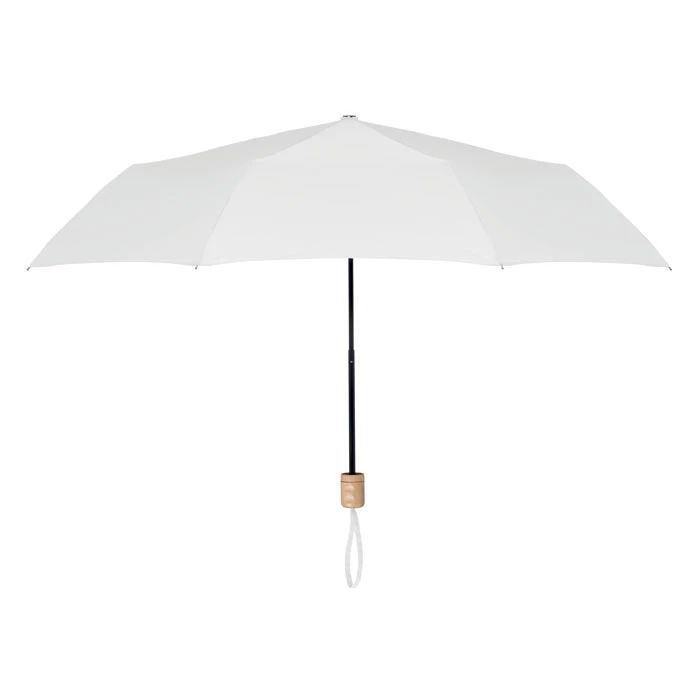 Składany parasol 21 cali, 3 sekcje z tkaniną pongee 190T RPET, czarny stelaż i żebra. Z drewnianą rączką. Ręczne otwierany i zamykany. Etui z tego samego materiału.
