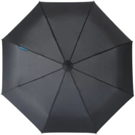 Objęty wzorem zastrzeżonym 3-sekcyjny parasol z automatycznym otwieraniem. Czarny metalowy trzpień, szkielet z włókna szklanego oraz plastikowy uchwyt pokryty gumą. W zestawie stylowy pokrowiec. Rozłożony mierzy 31 cm szerokości.