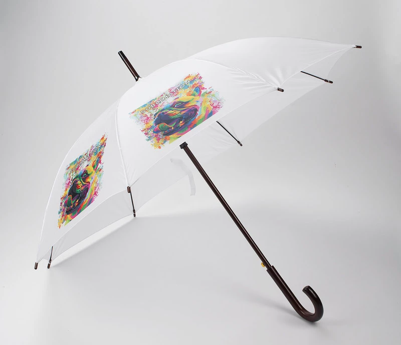 Parasol automatycznie otwierany z drewnianą zakrzywioną rączką. Śr czaszy po rozłożeniu to 104 cm, długość złożonego parasola to 88 cm. Wykonany z poliestru 190T.