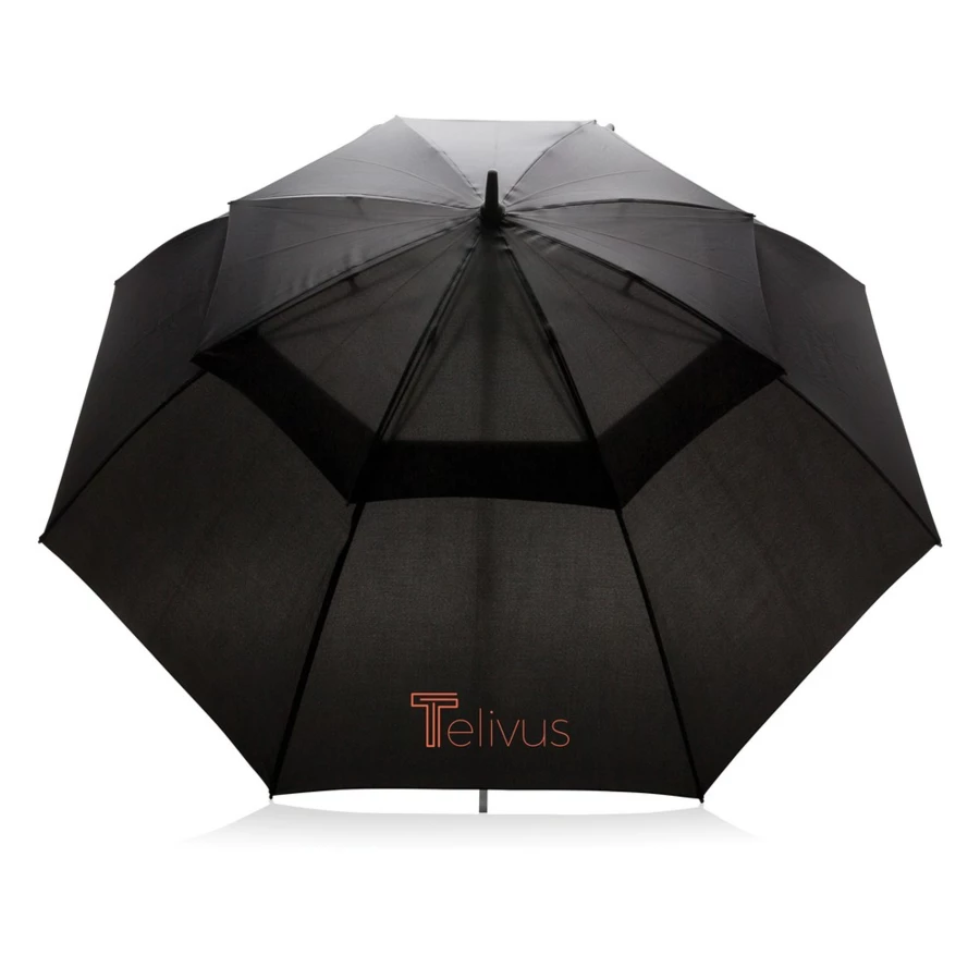 Parasol sztormowy 30”, automatyczne otwieranie, manualne zamykanie, metalowa rama, żebra z włókna szklanego, gumowy uchwyt, dzięki zastosowaniu technologii fizycznych znaczników AWARE™ wykorzystane materiały są identyfikowalne z pochodzenia, 2% wpływów z każdego sprzedanego produktu z kolekcji Impact jest przekazywane na rzecz Water.org, ślad węglowy produktu: 4,34 kg CO2