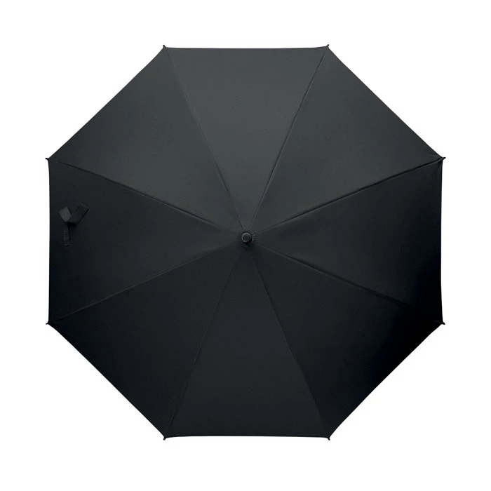 Wiatroodporny parasol o przekątnej 23 cali z automatycznym otwieraniem, stelażem z włókna szklanego i panelami z tkaniny pongee 190T. Plastikowe końcówki i górna część. Gumowany, zakrzywiony uchwyt z tworzywa PP. Ręczne zamknięcie.